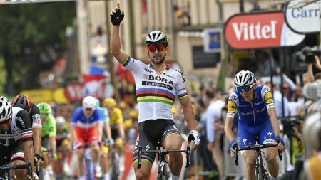 “能取得这个胜利我真的超开心,今天从德国出发人多得难以置信。如果说我没有任何期待或压力是不可能的。我是很想赢,尤其这次是从德国出发。我们赛前制定的计划并不成功,所以完全没有按照计划来。最后我冲的比较晚,得靠自己卡位,但是我成功了,真的很棒。”快步车队的德国车手马塞尔·基特尔(Marcel Kittel)在过线后激动到流泪,这是他首次骑着碟刹公路(S-Works Venge Disc)在列日拿下了他职业生涯第10个环法赛段冠军。FDJ车队的阿诺·德玛尔(Arnaud Démare)收获赛段第二,比利时乐透车队的安德烈·格莱佩尔(André Greipel)第三。