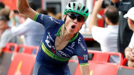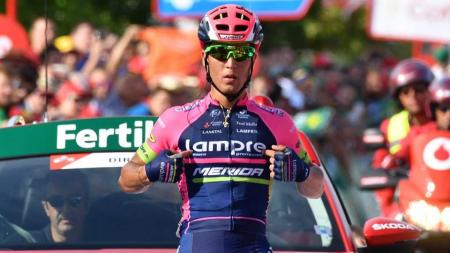 9月4号,环西第十五赛段,快步车队的詹卢卡·布兰比拉 ( Gianluca Brambilla)在终点前发力,最终赶超金塔纳(Nairo Quintana)获得了
