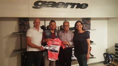 今年环意第八赛段的冠军,第八至第十赛段粉衫的得主,快步车队的布兰比拉(Gianluca Brambilla)近日参观了他的车鞋赞助商Gaerne位于意大利的总部。