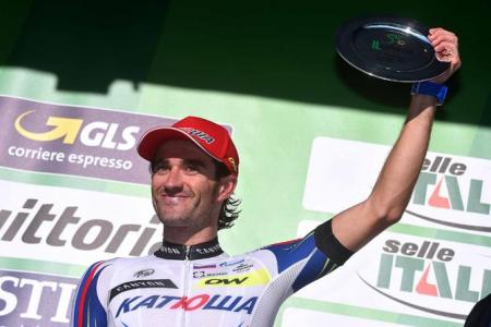萨夏•莫多洛(Sacha Modolo)今天终于站在了最高领奖台上,同时凭借赛段冠军获得的16个积分,在冲刺积分榜上反超帕里尼3分,夺得绿衫。